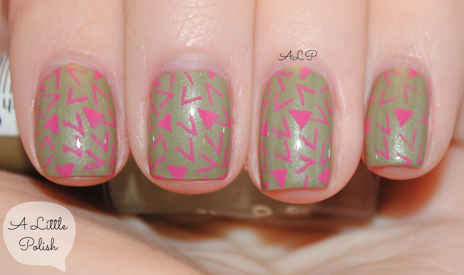 This is a different sort of color combination that you don't seem to run into everyday but I loved it! The stamping was subtle but bright on top of the olive base. I even wore this mani to my friends sons first communion :)