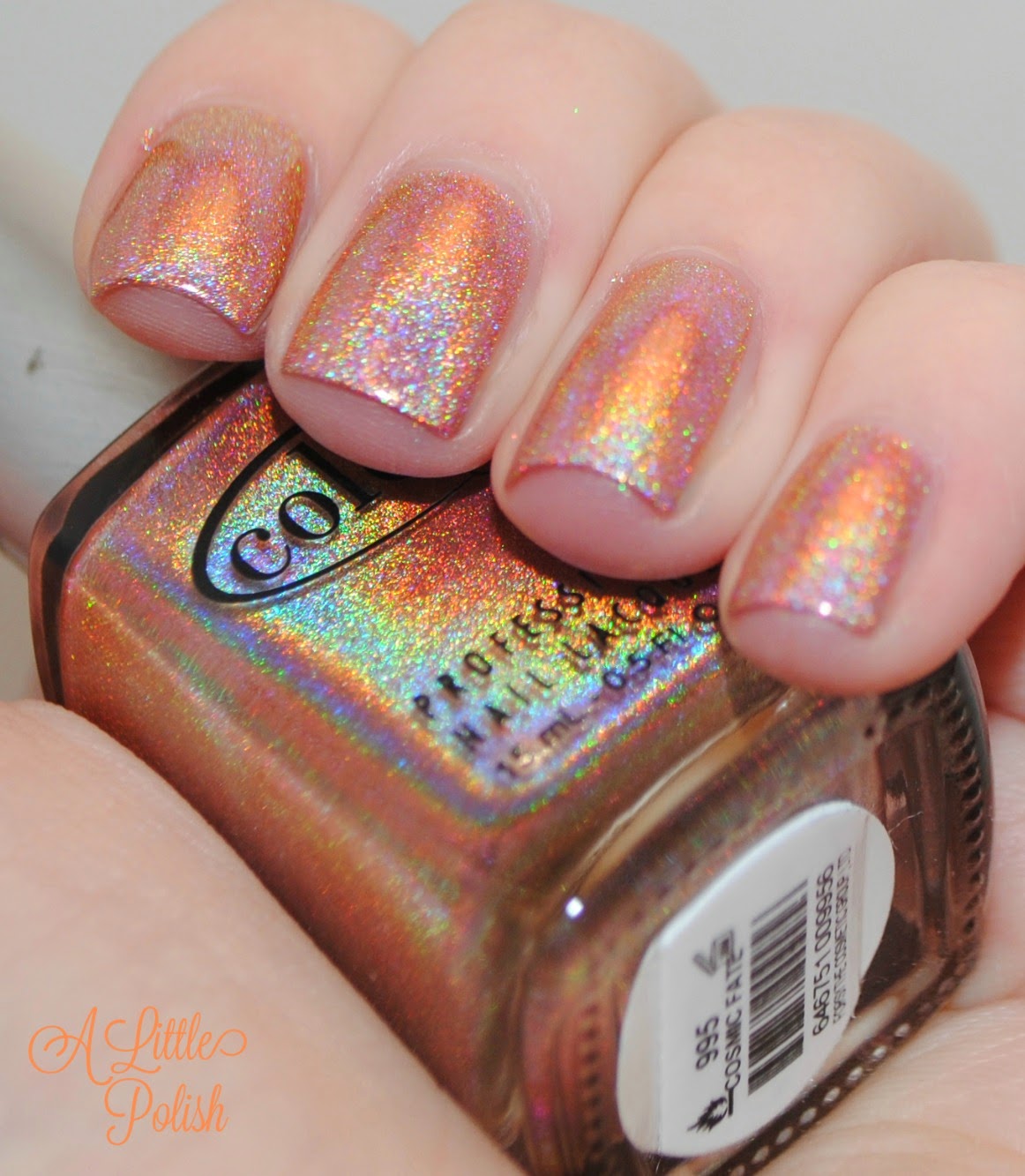 Cosmic Fate: This is an orange-copper holographic polish. This is two coats topped with Out The Door.